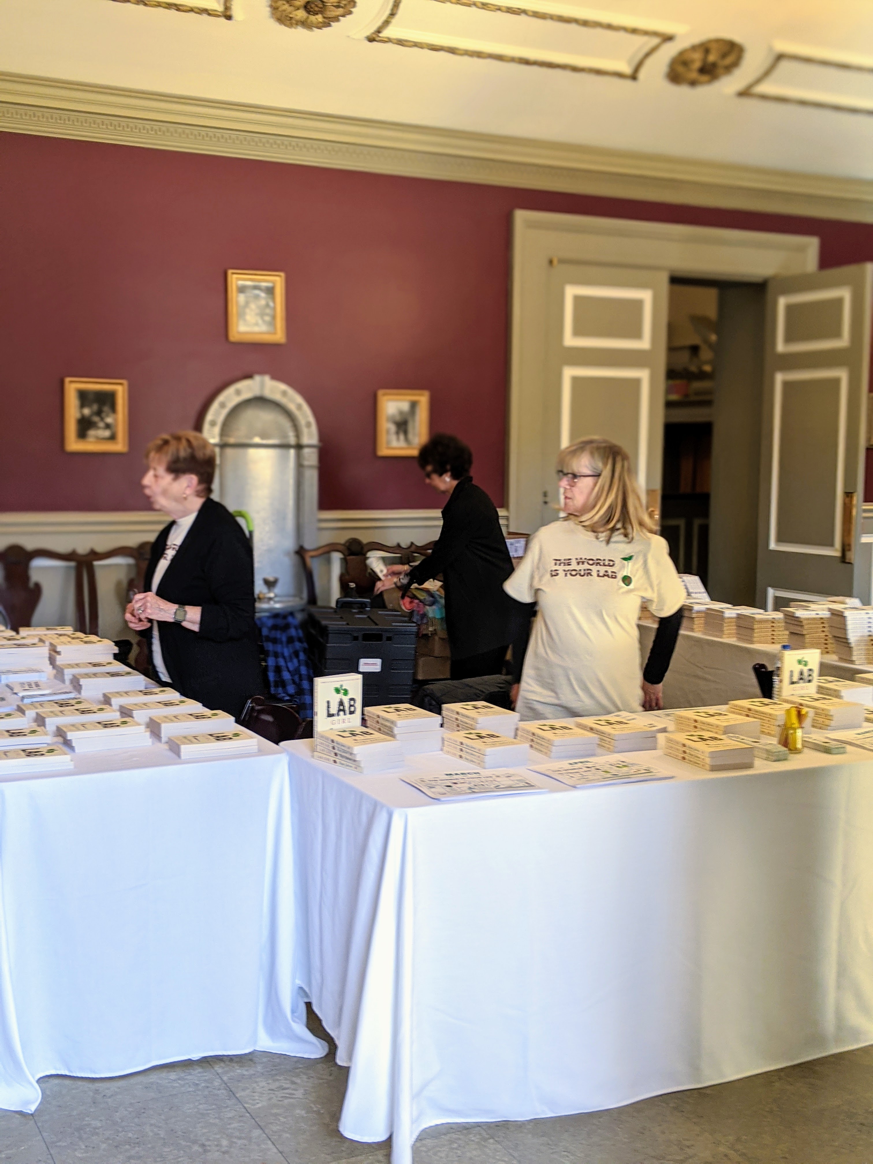 Volunteers prepare to pass out hundreds of free LAB GIRL copies (left to right: EmmaJean Woodyard, Kathleen Murray, and Johanna Seidel) Published March 9, 2020 at 3024 × 4032 in Volunteers prepare to pass out hundreds of free LAB GIRL copies (left to right: EmmaJean Woodyard, Kathleen Murray, and Johanna Seidel) Share this: Email a link to a friend (Opens in new window) Email Share on Facebook (Opens in new window) Facebook Share on X (Opens in new window) X More Share on LinkedIn (Opens in new window) LinkedIn Share on Pinterest (Opens in new window) Pinterest Share on Reddit (Opens in new window) Reddit Share on Tumblr (Opens in new window) Tumblr Like Loading...